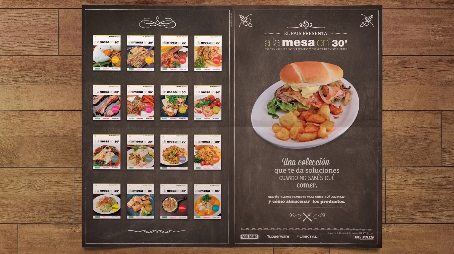 El diario El País nos confió el desarrollo de la gráfica de una colección de tomos de cocina rápida y fácil para la vida cotidiana.